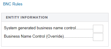 - Enter an override for the business name control if the calculated business name does not comply with Publication 4206 rules. This entry is mandatory. The Name Control field for the corporation is created from the information specified on the first name line of the corporation name and as per the complete list of rules specified by IRS Publication 4206. For more information on name control, see 990 E-file: Appendix B - Name Control.