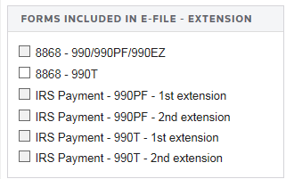 - Navigate to E-file > Extension > Additional Information > Forms Included in E-file.