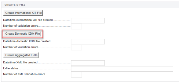 On the Create E-file screen, this time, select the Create Domestic XDM File button.
