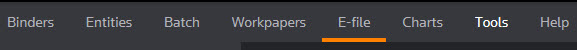 Once you have selected Create E-file in Organizer, go to E-file on the Income Tax menu bar.