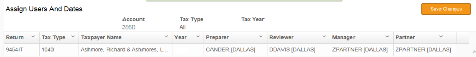 - When the user assignments appear on the left side of the screen, click Save Changes and return to the Returns list screen.