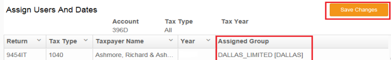 - The Assigned Group will show DALLAS_LIMITED. Click Save Changes.