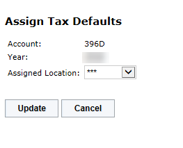 This means that any administrator in the selected location can edit tax defaults for account 396D. All returns opened in account 396D will use the 396D tax defaults. No nonadministrator user on account 396D may edit the tax defaults for the account.